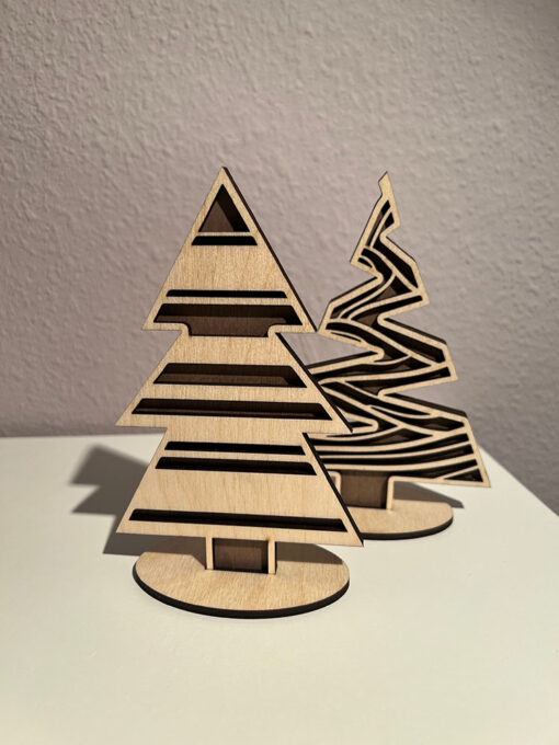 Diese Tannen werden aus zwei Lagen Holz verleimt und in den Fuß eingesteckt.